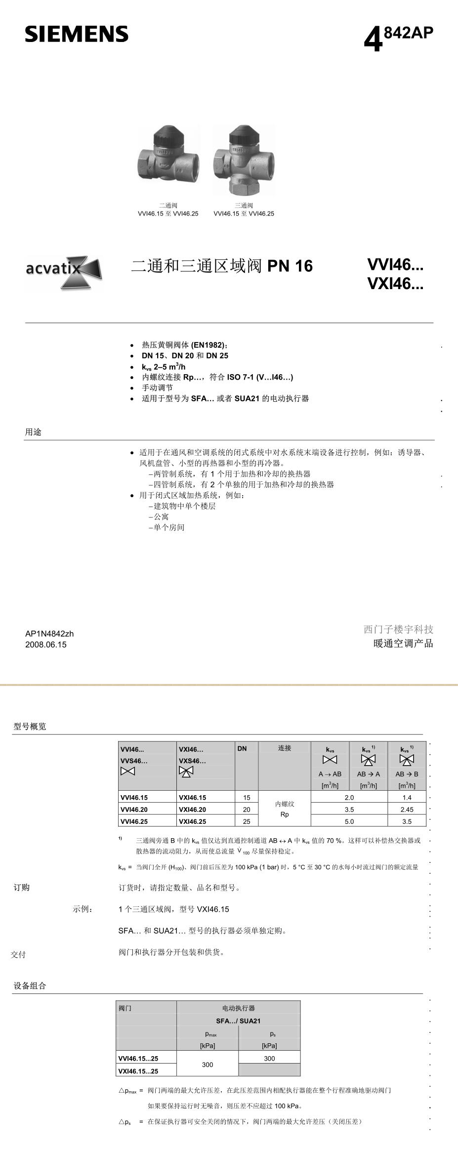 产品详情:西门子二通阀VVI46.20+sua21